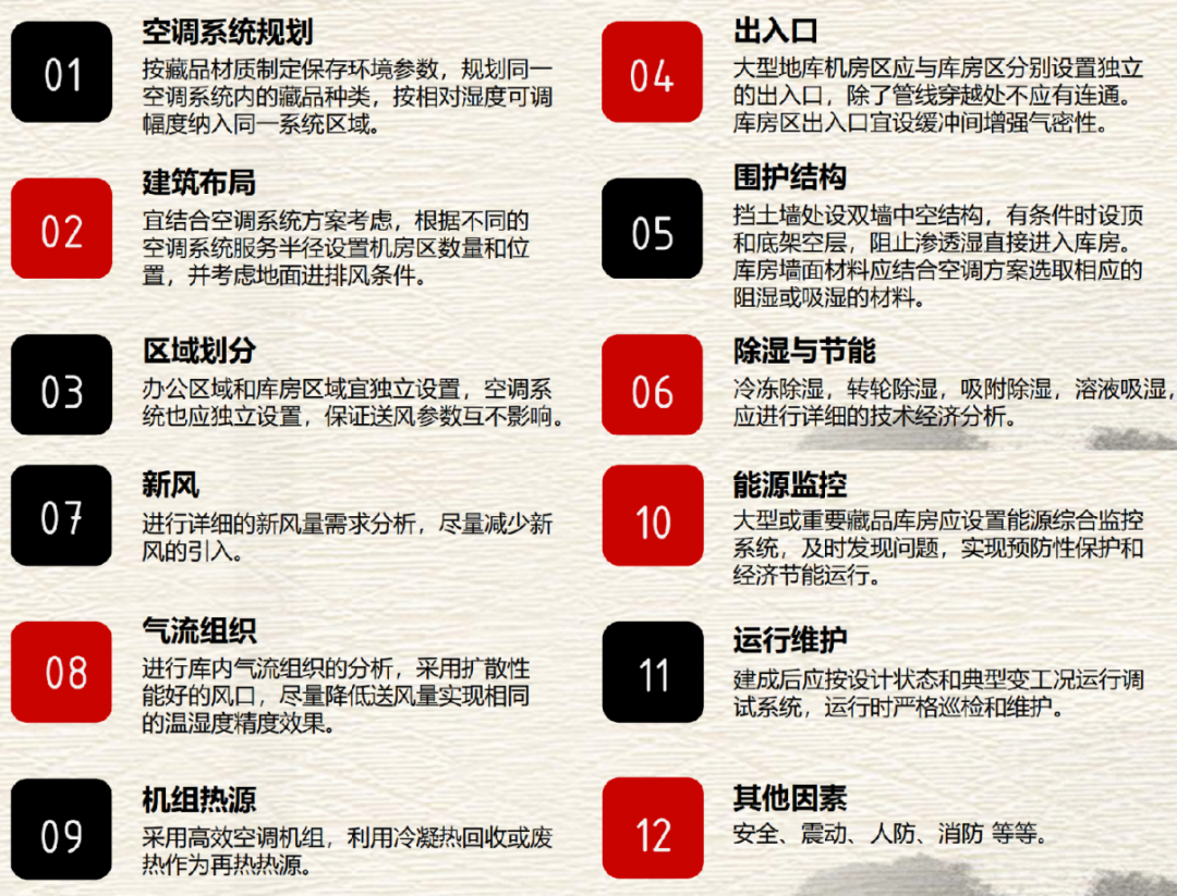 (5)節(jié)能低碳,評估藏品的重要程度和保存環(huán)境,因地制宜,合理配置設備。