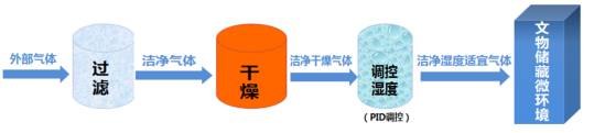 采用多級復合帶壓過濾或膜分離技術,濾除0.01μm以上的固體污染物和有害氣體,長久保持空間內的氣體潔凈。此外,采用分子過濾或多相催化技術,可以去除對文物有害的SO2、NO2、甲醛、TVOC等污染氣體,同時,“自潔凈”技術,避免藏品釋放的一些有害物質對文物造成的二次損傷。