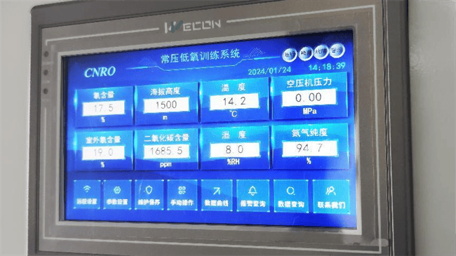森羅股份為雙發訓練基地打造的低氧訓練房,能夠結合不同受訓群體、低氧訓練階段,定制對應的訓練計劃,選擇適宜的訓練參數,自動運行并維持相應環境參數。