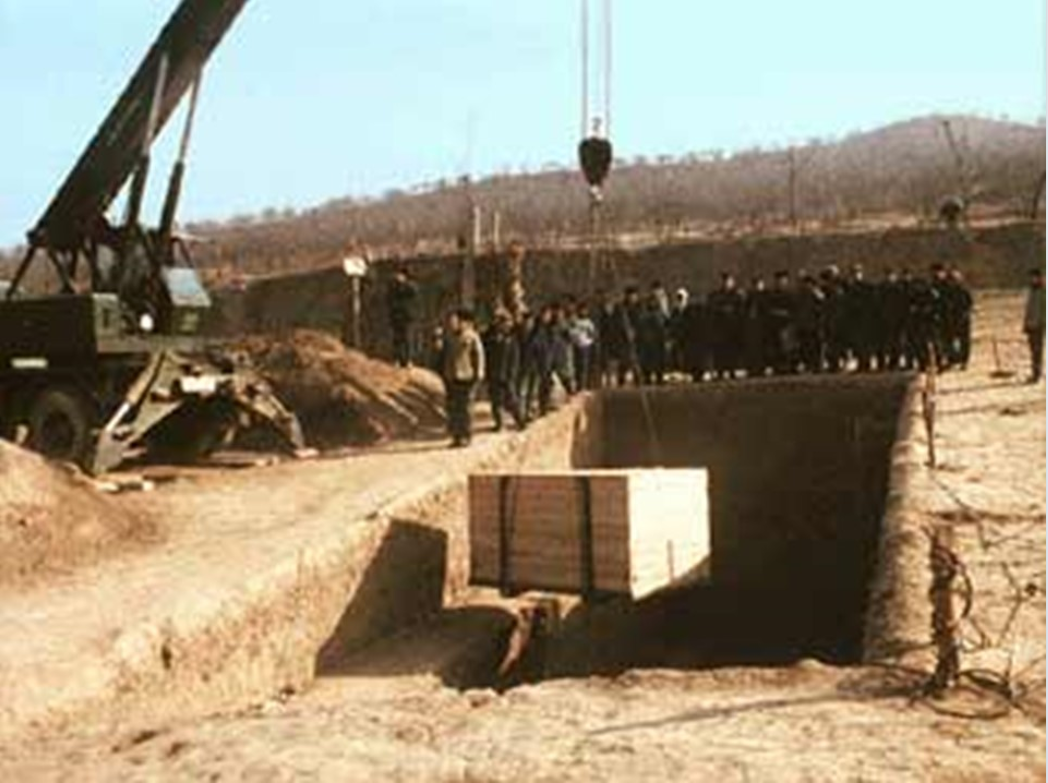 當時考古隊的隊長決定對這兩件銅車馬分別進行整體提取,把這個銅車馬整體取回去以后運回到實驗室,再進行實驗室考古,完成記錄和修復等一些列工作內容。下圖就是當時整體提取的現場。