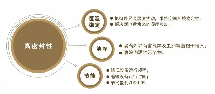 (1)高密封技術可以阻隔大氣中灰塵、溫濕度、有害生物、氧和污染氣體等對氣調空間內藏品的影響,維持密封空間內環境的穩定。