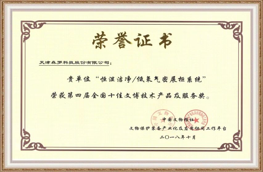 森羅股份本次提供的解決方案基于2018年第四屆全國十佳文博技術產品及服務獎的獲獎產品“恒濕潔凈/低氧氣密展柜系統”設計。通過在線監測、自動調控等模式,模擬多空間恒濕、低氧試驗環境,并對環境內參數實時監測與精準調控,為青銅器病害機理的數學模型設計提供在線實時數據,為建立人工模擬環境因素與典型病害間的關系,積累多因素綜合作用下青銅材料結構劣化的預測提供數據支撐。氣密恒濕展柜。