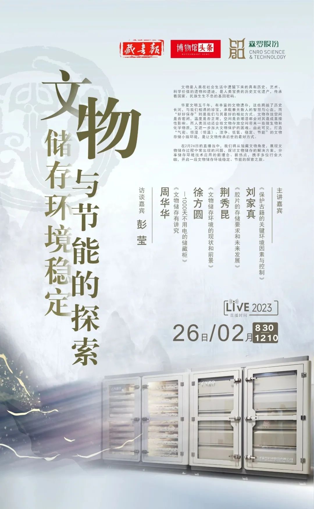 2月26日,由藏書報、博物館頭條主辦,森羅股份協辦的“文物儲存環境穩定與節能的探索”線上論壇順利召開。