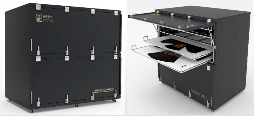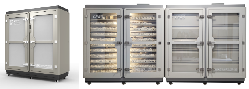 針對貫徹文物領域綠色低碳發展的舉措,結合多年深耕的“CATHSE”技術,森羅股份開發了集高氣密圍護結構、恒濕/潔凈模塊以及無線數據監測系統于一體的節能型恒濕儲藏柜,并結合實際需求開發了不同尺寸、不同濕度控制的系列產品,適用于博物館、圖書館、檔案館等不同應用場景需求。常壓低氧氣調殺蟲系統