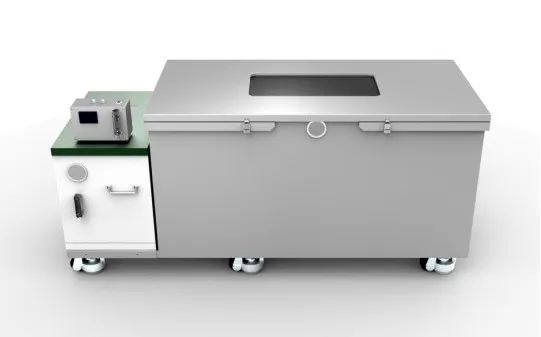 為此,國(guó)家文物局考古研究中心和天津森羅科技股份有限公司聯(lián)合研制了“考古發(fā)掘文物氣密充氮脫鹽系統(tǒng)”。系統(tǒng)集成了氮?dú)夤┙o裝置、氣密水箱、超微米氣泡發(fā)生裝置、檢測(cè)裝置等。通過氣泡生成系統(tǒng)將氮?dú)庖晕⒚住⒓{米級(jí)氣泡形式充入脫鹽溶液底部,一方面,將脫鹽溶液中的氧氣置換降低溶解氧減緩電化學(xué)腐蝕等;另一方面利用超微米氣泡的大比表面積、自身增壓溶解、在脫鹽溶液中的高溶解率等,使其從文物表層微孔進(jìn)入文物內(nèi)部,完成深層清洗脫鹽,并借助氣泡自身爆破形成的局部負(fù)壓,推動(dòng)清潔水的流動(dòng),實(shí)現(xiàn)出土文物高效脫鹽。常壓低氧氣調(diào)殺蟲系統(tǒng)。