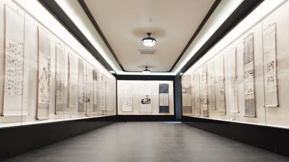 針對蒲松齡紀念館原展柜密封性不良,難以維持“穩定、潔凈”微環境問題,森羅股份為其量身定制了兩套共31延米長的沿墻展柜,搭載“恒濕潔凈系統”改善書畫展廳文物展陳環境。氣密恒濕展柜。