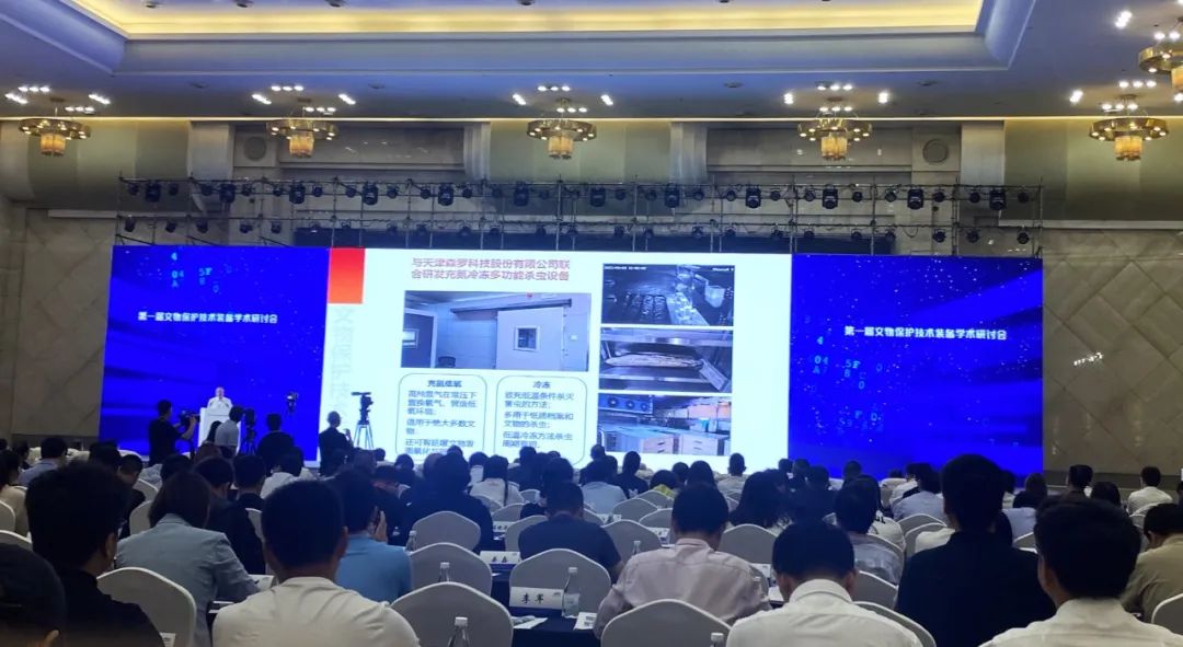 本次會議以“裝備自主創新,助力文物事業高質量發展”為主題,中國科學院院士陳和生、故宮博物院院長王旭東、敦煌研究院院長蘇伯民、中國華錄集團有限公司副總經理張繼軍、中國航空規劃設計研究總院首席專家葛家琪、機械工業儀器儀表綜合技術經濟研究所所長歐陽勁松等專家,圍繞黨的十八大以來,我國文物保護裝備產業化及應用工作已取得的成果與成效,立足新形勢新要求,分析我國文物保護裝備產業發展面臨的機遇與挑戰,探討高新技術裝備持續賦能文物事業高質量發展的趨勢與路徑。王旭東院長、蘇伯民院長在演講中分別提及了森羅股份的常壓低氧(冷凍)氣調殺蟲產品及服務、節能型恒濕潔凈儲藏柜、科技考古等相關產品。