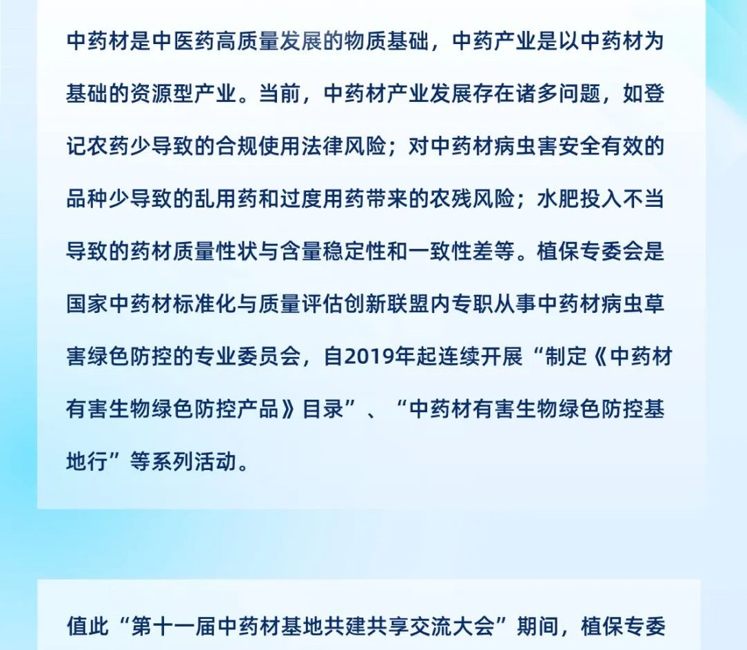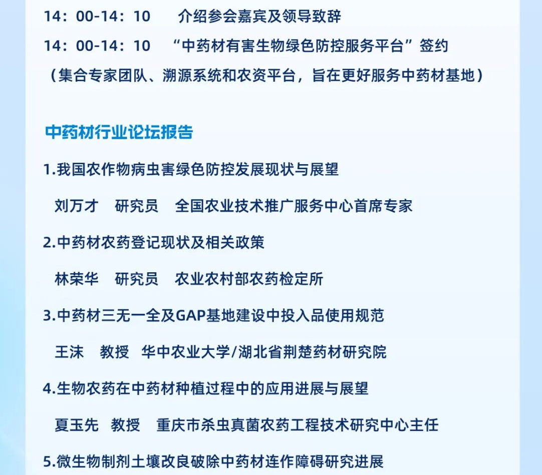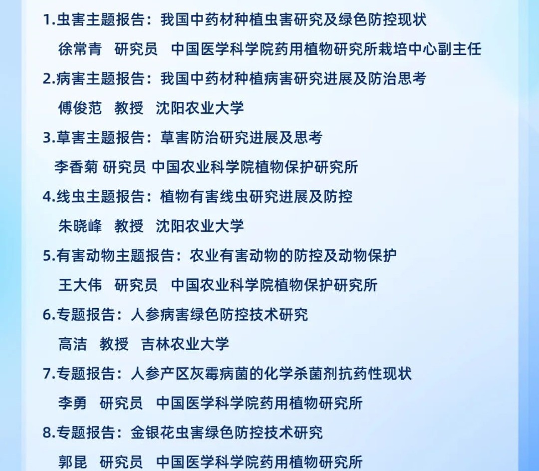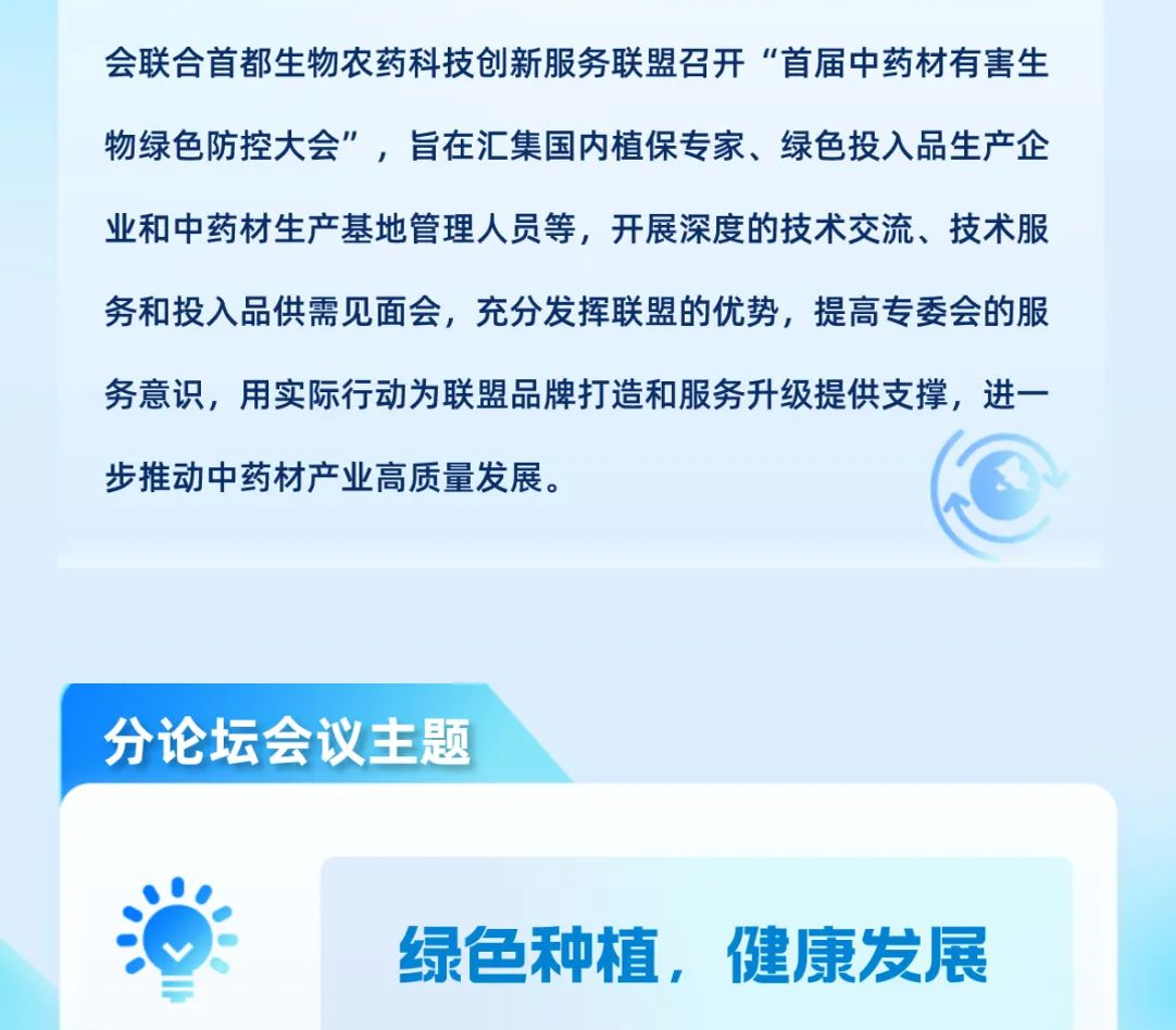 目前中藥材種植和儲存面臨諸多挑戰,如過度依賴化學農藥、土壤污染、連作障礙、病害、蟲害、草害、鼠鳥損害以及儲存等難題,為應對這些挑戰,綠色防控大會將邀請專家學者們共同探討和分享一系列創新解決方案: