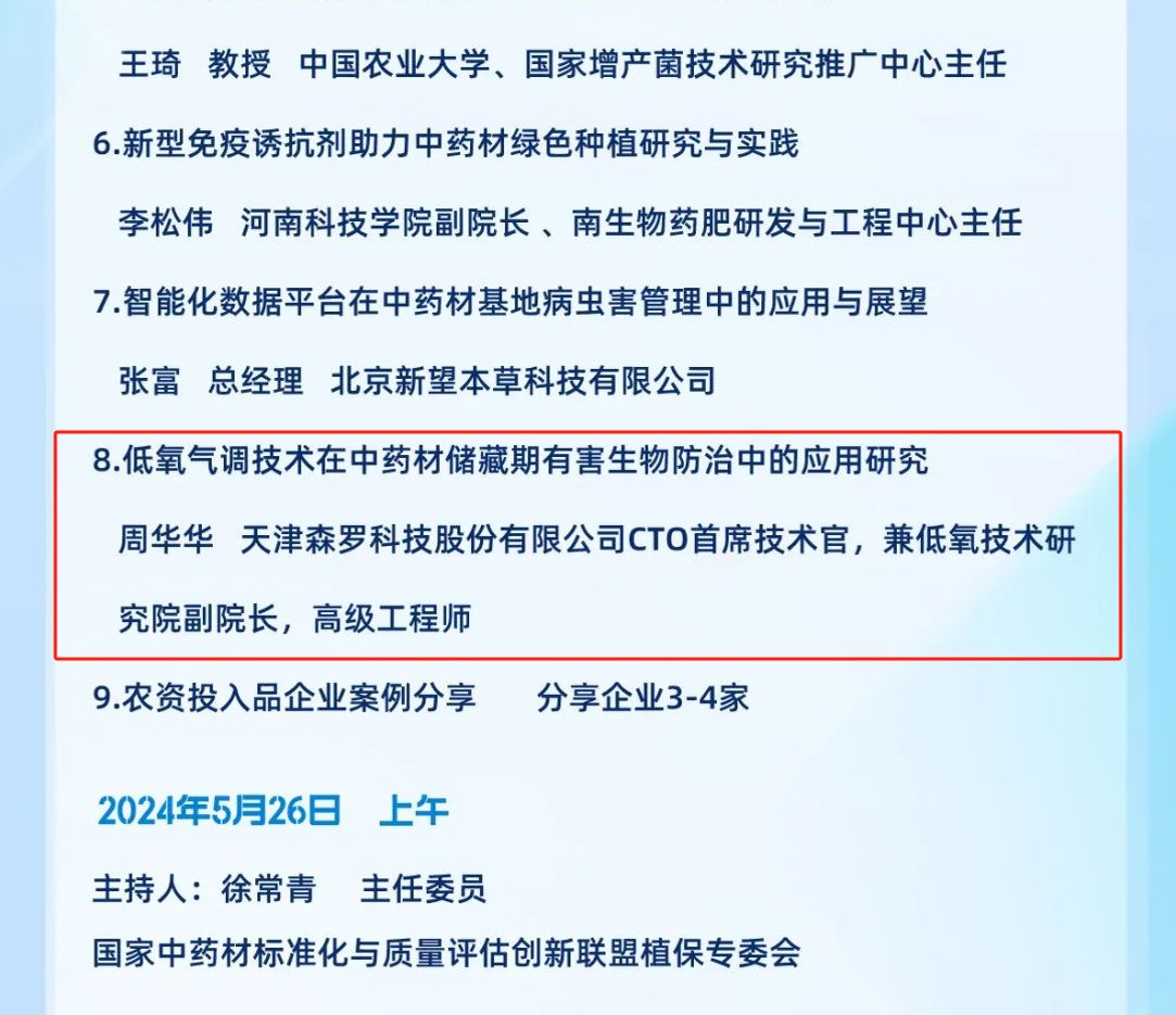 5月24日~26日,國家中藥材標準化與質量評估創新聯盟將于天津舉行的第十一屆中藥材基地共建共享交流大會上設“首屆中藥材有害生物綠色防控大會”分會場,邀請國內知名中藥材種植、科研、監管等領域的專家學者,共同探討中藥材有害生物綠色防控的最新理念、技術和管理經驗。低氧展柜