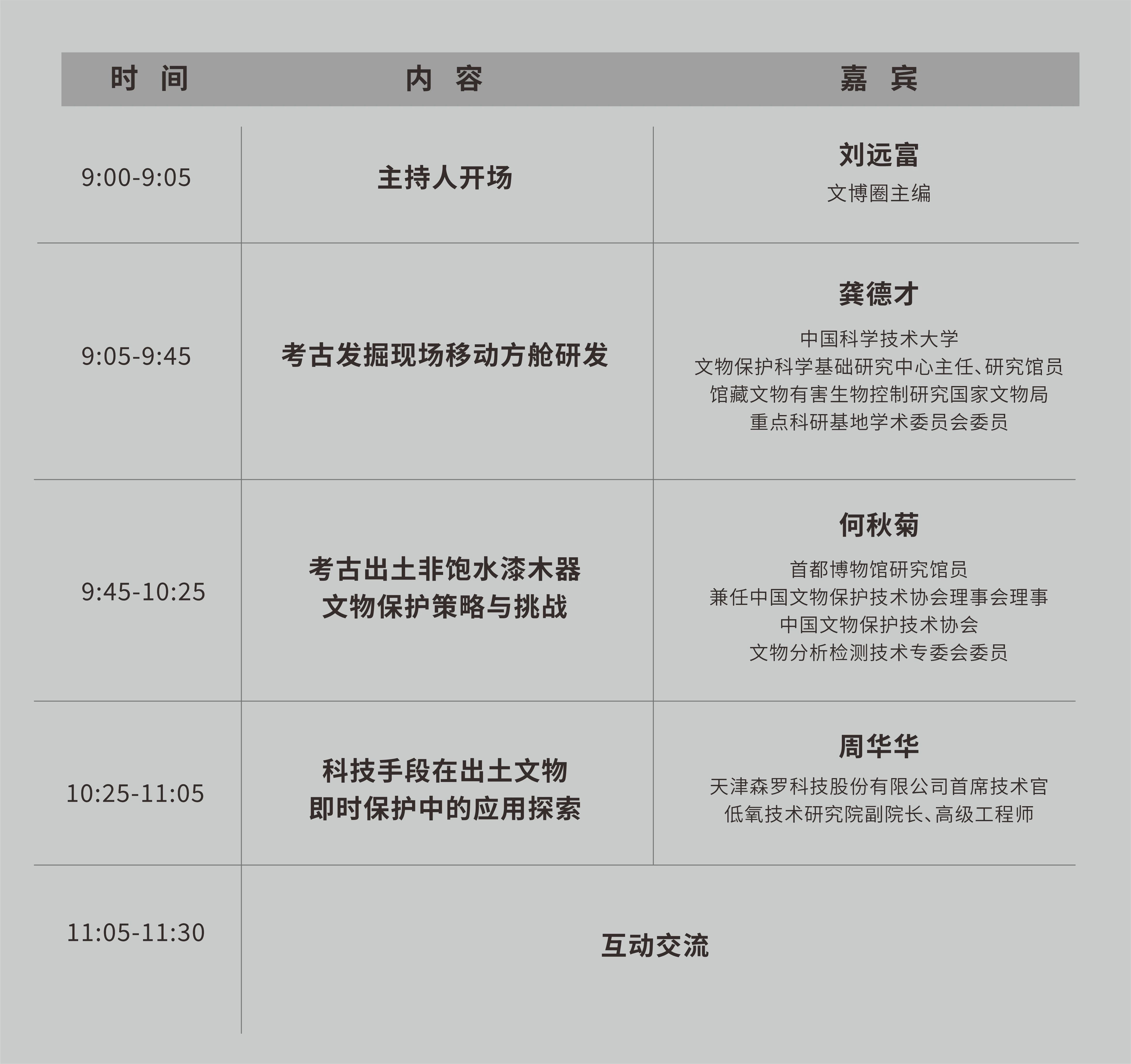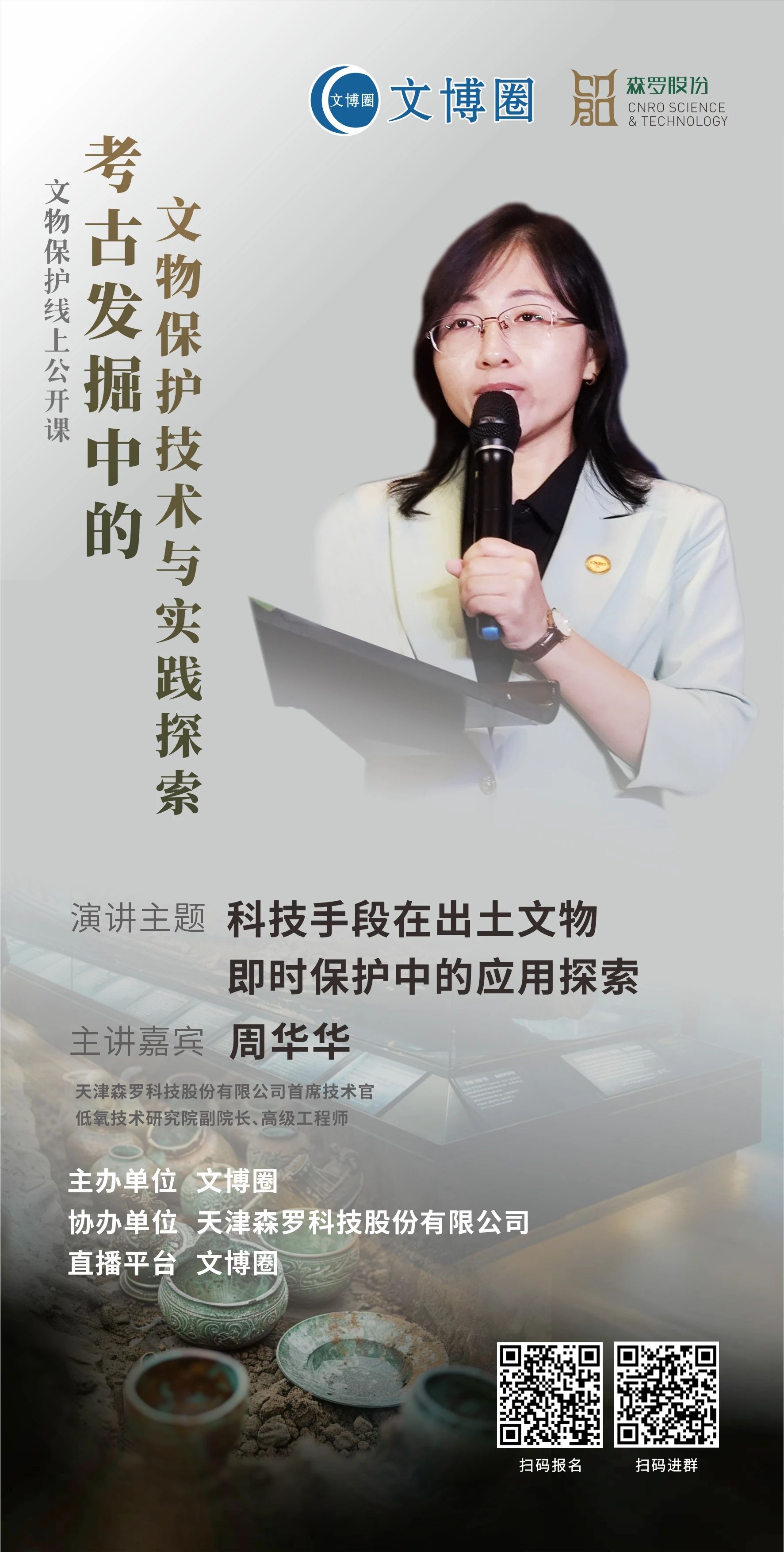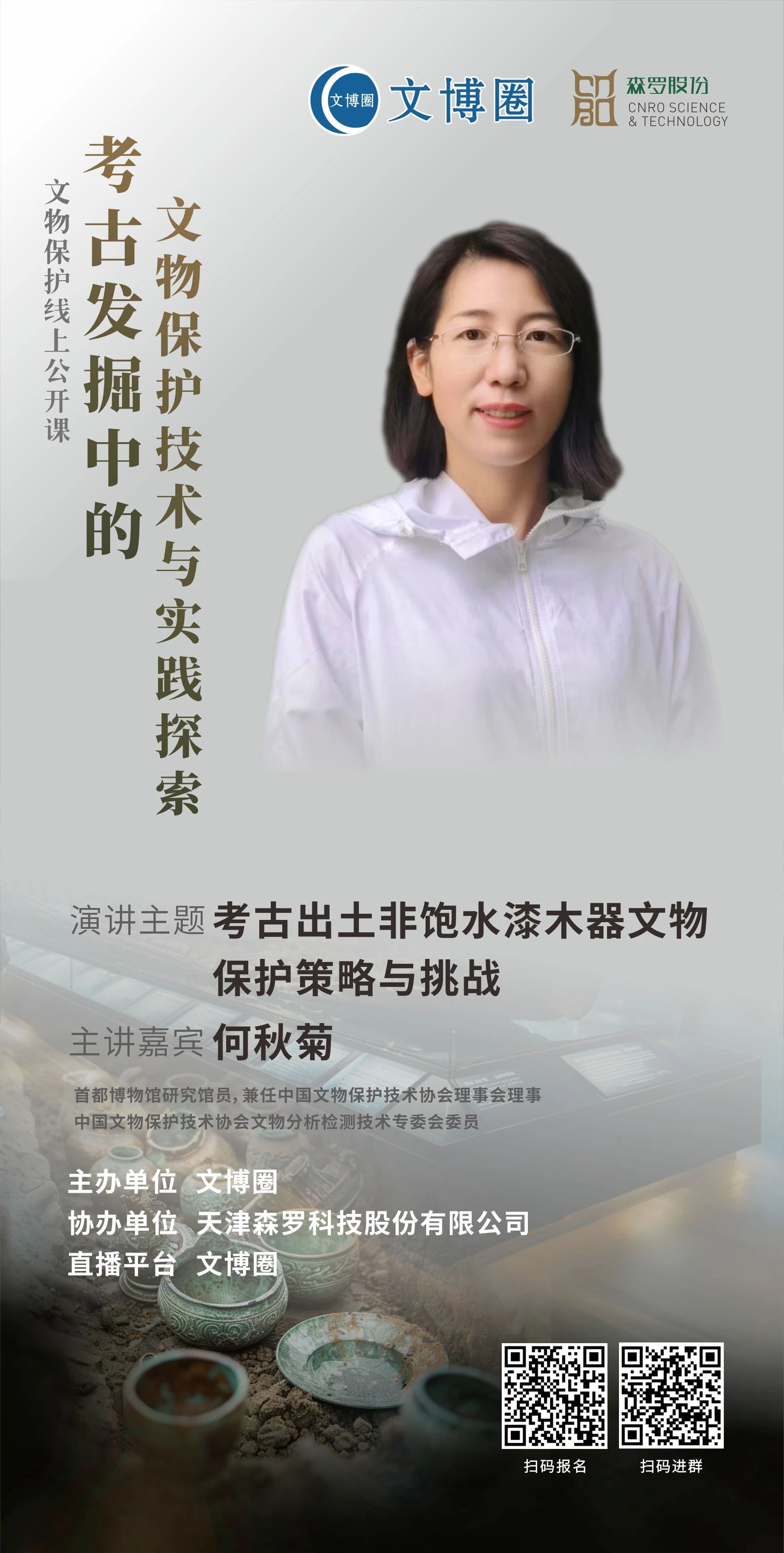 本期公開課直播,邀請到相關領域專家學者,圍繞考古出土文物保護的學術性研究、探索性應用、跨學科融合創新等不同角度,分享他們在各自研究領域內的深入見解、最新成果及寶貴經驗,為考古出土文物的保護與研究工作提供新的思路和方法。除主題演講外,還設置參與抽獎、互動沙龍等多個環節,促進思想的碰撞與靈感的激發。