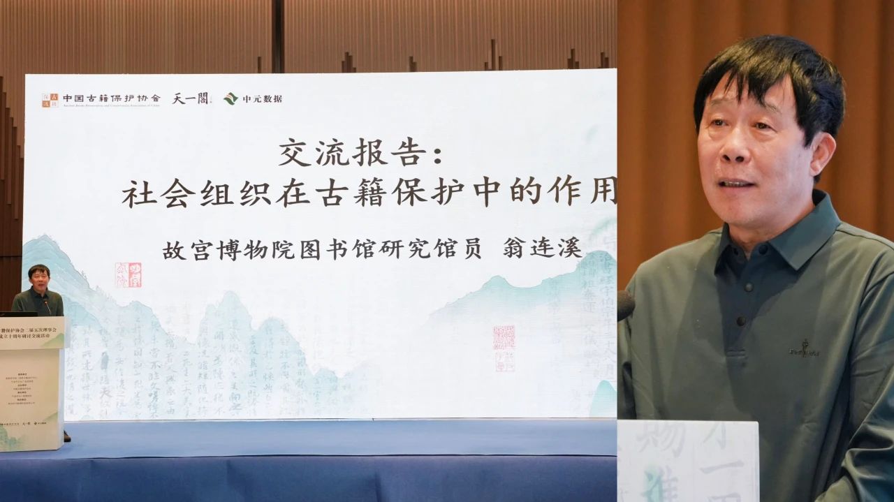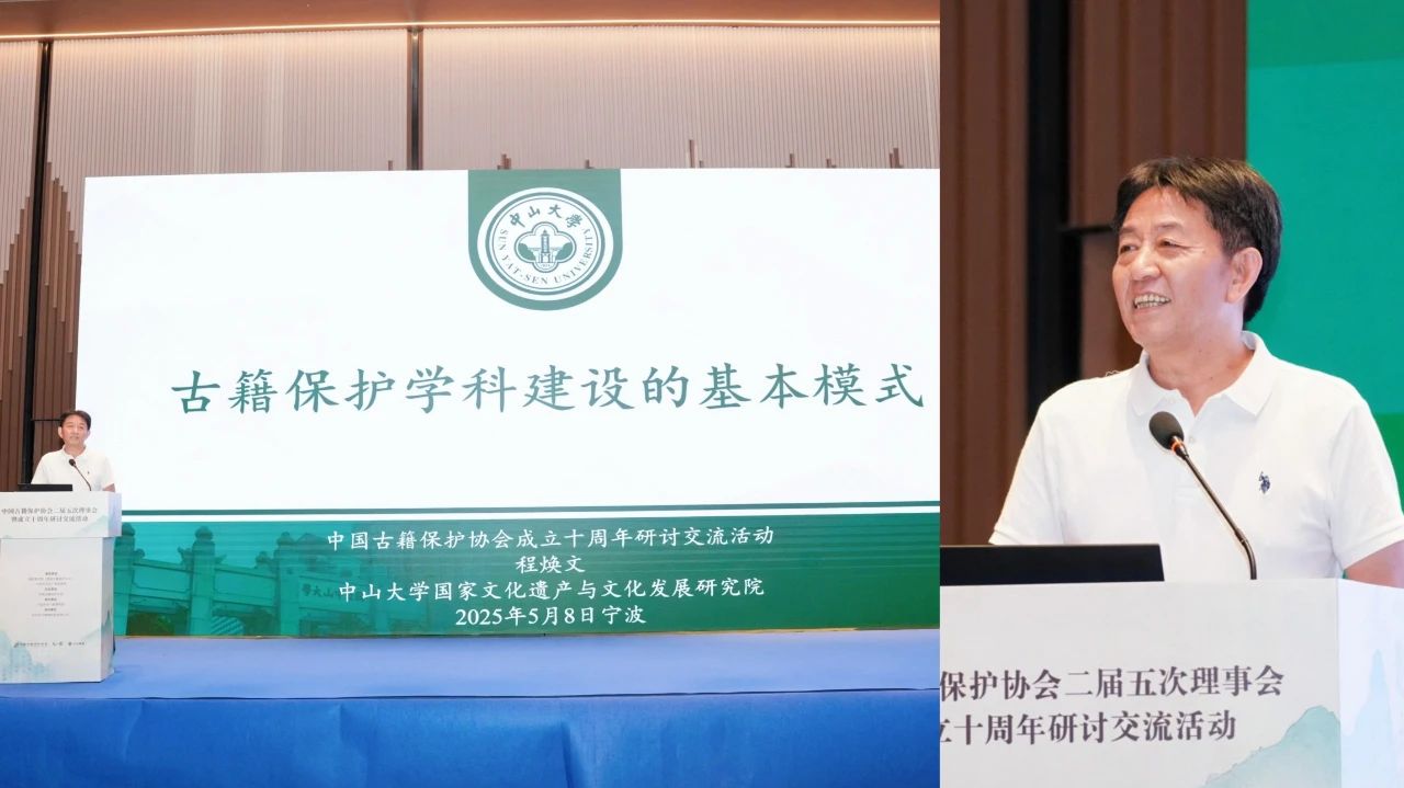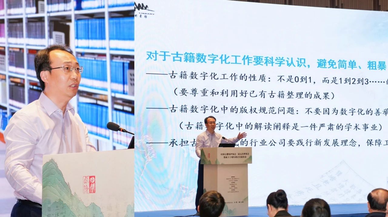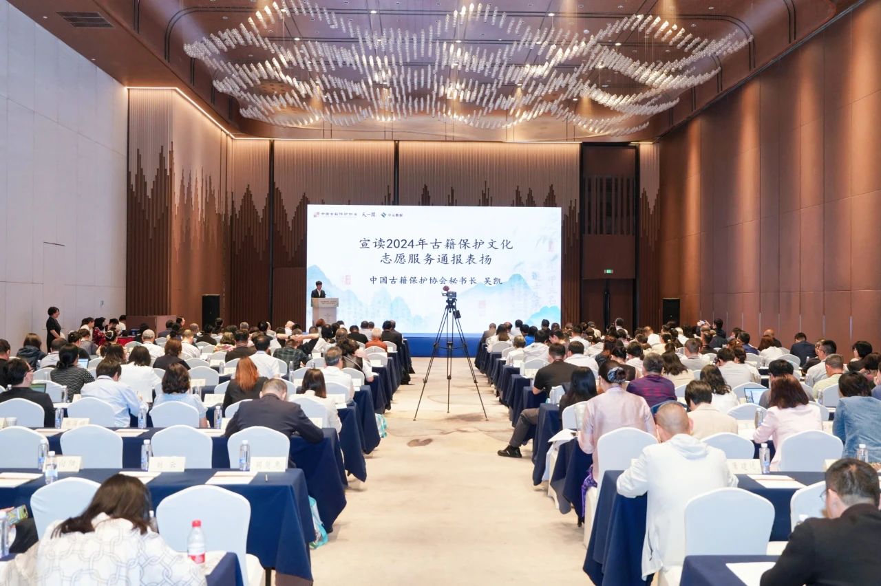 2025年5月8日至9日,中國古籍保護協會二屆五次理事會暨成立十周年研討交流活動在浙江寧波成功舉辦。協會相關負責人、常務理事、理事、分支機構代表和來自古籍領域專家學者、藏書家、企業人士近200人參加了本次活動。中國圖書館學會副理事長劉小琴、國家圖書館副館長魏崇、寧波市文化廣電旅游局副局長陳彩鳳、杭州國家版本館館長吳雪勇、中山大學國家文化遺產與文化發展研究院院長程煥文、浙江圖書館館長胡海榮、國家古籍保護中心辦公室副主任王沛等嘉賓應邀出席活動。活動由國家圖書館(國家古籍保護中心)、寧波市文化廣電旅游局指導,中國古籍保護協會主辦,寧波市天一閣博物院承辦,杭州中元數據科技有限公司協辦。