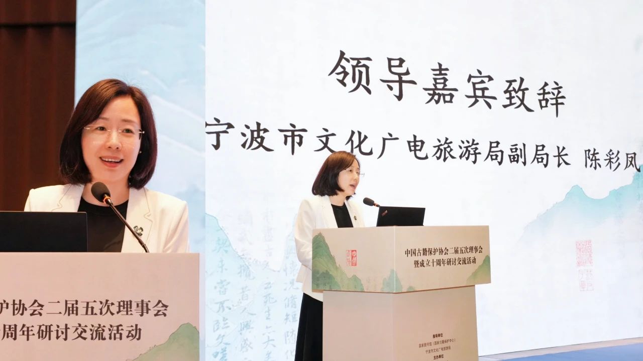 寧波市文化廣電旅游局副局長陳彩鳳在致辭中對選擇在寧波召開2025理事年會暨成立十周年研討交流活動表示感謝。她介紹了寧波深厚的藏書文化底蘊及“書藏古今、港通天下”的傳承。天一閣作為現存歷史悠久的私家藏書樓、當代重要文化地標,在古籍整理研究、收藏保護方面持續取得了豐碩成果,未來通過天一閣南館建設和文化賦能、數字賦能、創新賦新,將使珍貴典籍得到更好保護。她表示,要借此契機學習借鑒同行的先進經驗,共同探討推動中華優秀傳統文化創造性轉化、創新性發展的新路徑。