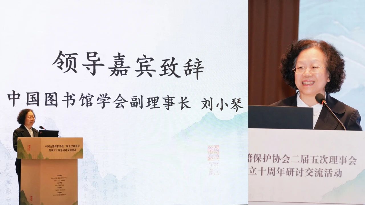 中國圖書館學會副理事長劉小琴在致辭中指出,協會成立十年來從瀕危西夏古籍的“起死回生”,到志愿服務行動摸清家底,從團體標準的研制,到跨界合作的深化拓展,始終以高度的責任感與使命感,搭建政府、行業之間的橋梁紐帶,凝聚起守護文明根脈的磅礴力量;廣泛動員社會參與,為古籍保護賦能,解決了一批行業“急難愁盼”的問題,令人贊嘆。古籍保護是系統工程,需要多方協力、久久為功。中國圖書館學會與中國古籍保護協會都是社會組織,期待進一步深化協同聯動,共同探索古籍保護事業高質量發展的新路徑。