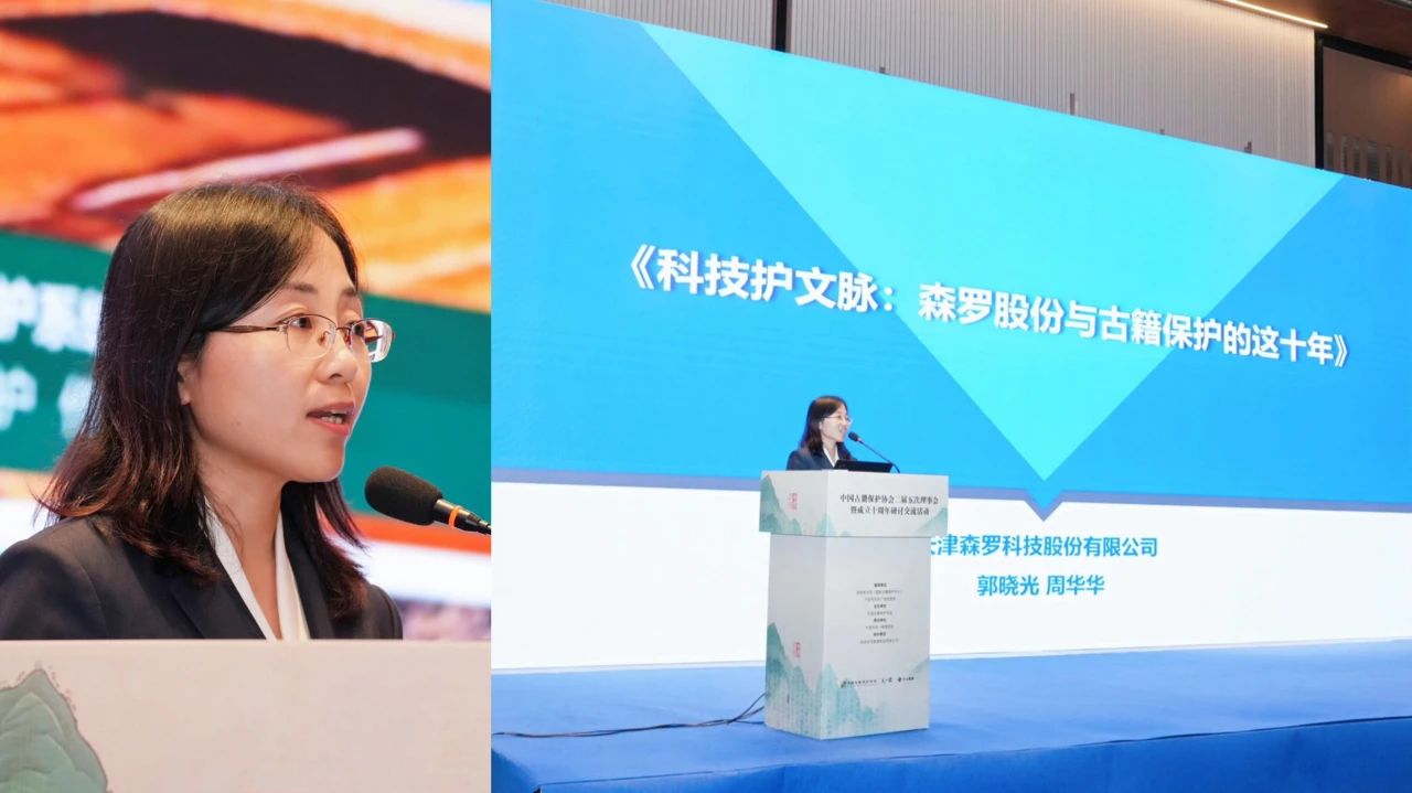 天津森羅科技股份有限公司首席技術官、副總經理周華華介紹了該公司在支持古籍保護行業科技創新、育才引智、產學融合、標準引領、傳播共享、社會公益等方面的工作實踐。