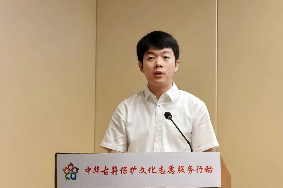 來自南寧師范大學(xué)中國(guó)古典文獻(xiàn)學(xué)專業(yè)的李寶峰同學(xué)作為志愿者代表發(fā)言,他深感參與古籍保護(hù)“光榮而責(zé)任重大”,表示會(huì)充分發(fā)揮專業(yè)所學(xué),認(rèn)真細(xì)致完成各項(xiàng)古籍保護(hù)工作,為守護(hù)中華文化根脈貢獻(xiàn)青春力量。