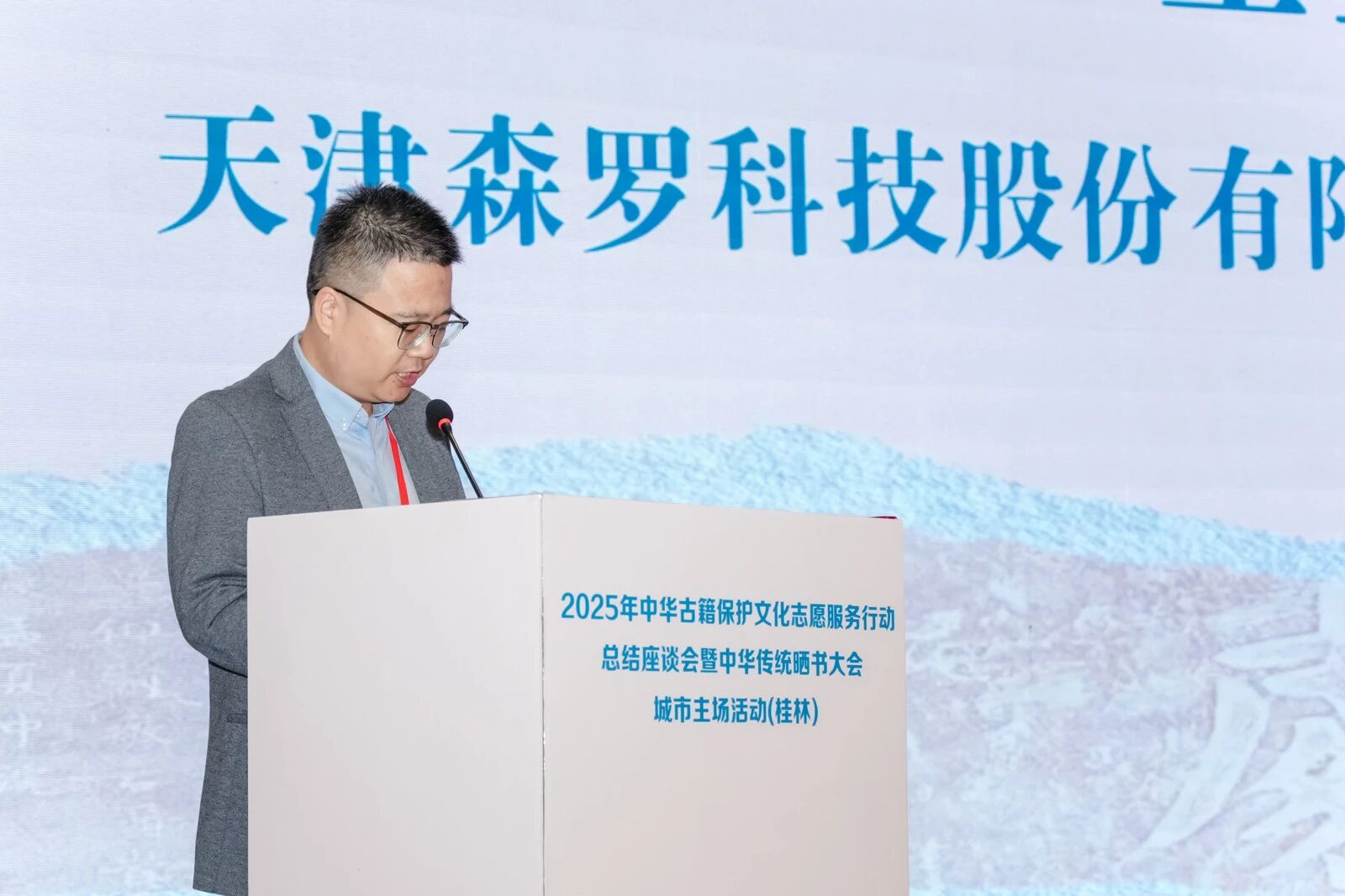 2025年10月21日至22日,“2025年中華古籍保護文化志愿服務行動總結座談會暨中華傳統曬書大會城市主場活動(桂林)”在廣西桂林成功舉辦。活動由國家圖書館(國家古籍保護中心)、中國古籍保護協會主辦,廣西壯族自治區桂林圖書館(廣西桂林古籍保護中心)、桂海碑林博物館承辦,廣西師范大學出版社集團有限公司協辦,國家圖書館出版社、天津師范大學圖書館支持。來自全國古籍保護中心代表、金石傳拓專家、公益組織及媒體代表約70人參加了活動,森羅股份作為長期關注并助力古籍保護的企業代表受邀參會。