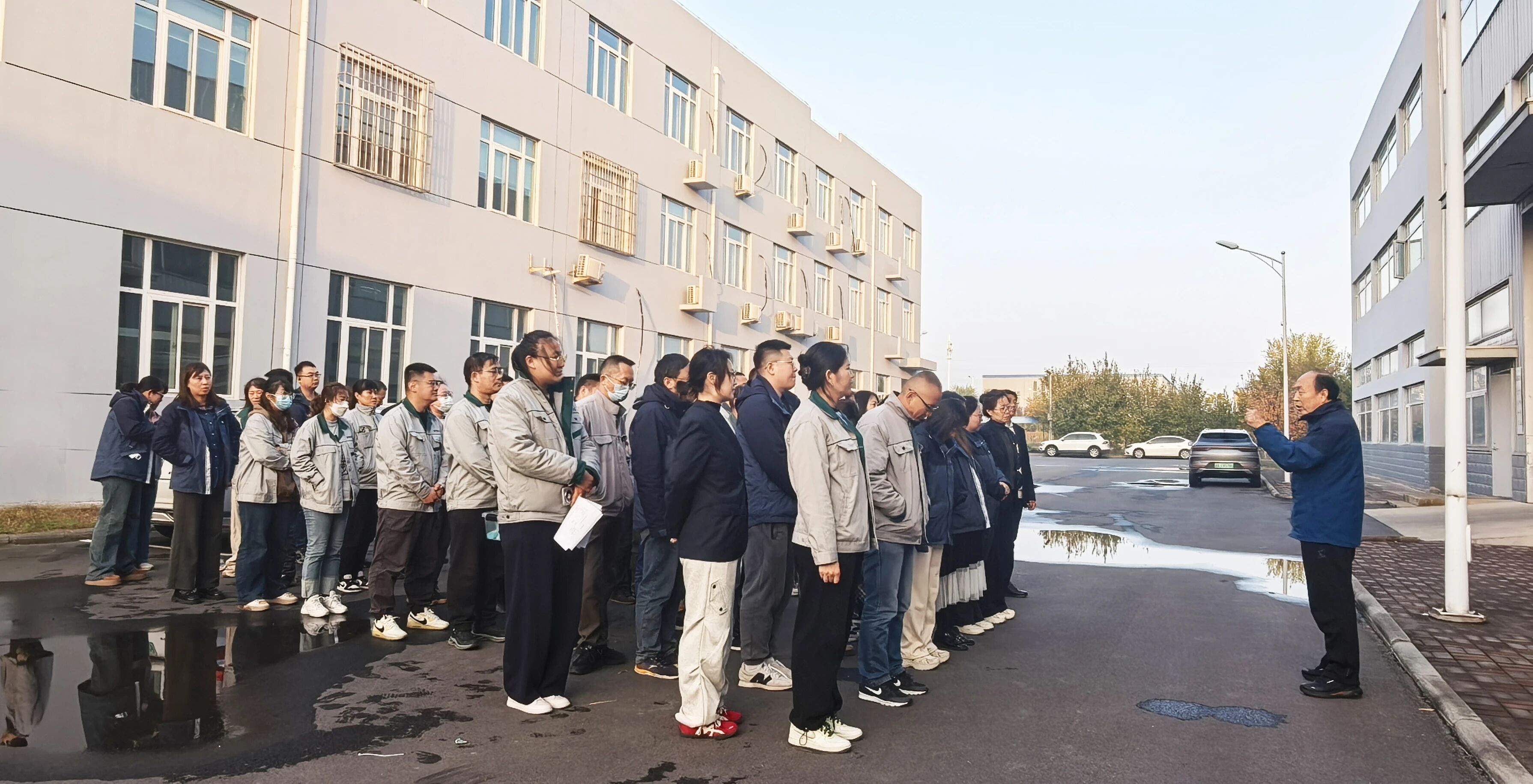演練模擬了火情發生與特種設備工傷事故場景,從報警、疏散、滅火到傷員救護、信息上報等環節,均嚴格按照預案執行。全體員工反應敏捷、配合默契,在3分鐘內集合完畢,行動迅速完成疏散,展現了森羅人高度的紀律性與團隊協作精神。