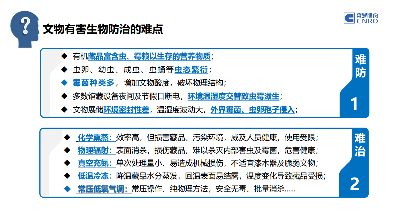 通過(guò)故宮博物院、中國(guó)人民革命軍事博物館、中國(guó)鐵道博物館、首都博物館、四川圖書(shū)館等應(yīng)用案例,讓大家了解庫(kù)房、儲(chǔ)藏柜、展柜等不同環(huán)境調(diào)控方法;結(jié)合文物批量集中消殺、短期2~3年預(yù)防性保護(hù)儲(chǔ)藏等需求,開(kāi)展常壓低氧氣調(diào)殺蟲(chóng)、儲(chǔ)藏服務(wù)等,實(shí)現(xiàn)文物“殺蟲(chóng)防蟲(chóng)、防霉抑菌、防酸化氧化”等保護(hù)儲(chǔ)藏。