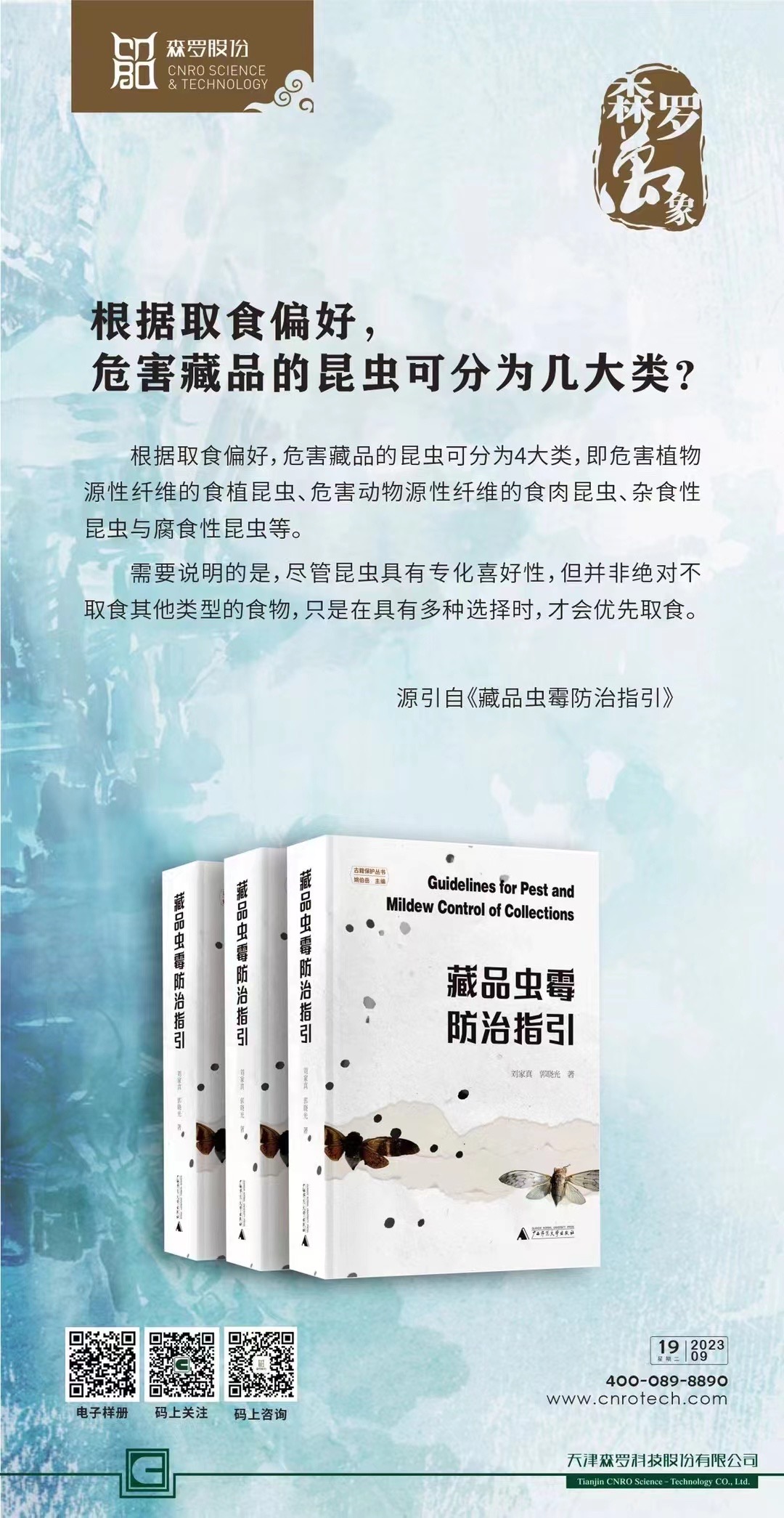 《森羅萬象》萬象包羅,第47問,根據取食偏好,危害藏品的昆蟲可以分為幾大類?了解館藏害蟲相關信息,探索0污染、0殘留、0損傷的殺蟲方法,掃碼私信“森羅小助手”期待與您共同解鎖更多蟲霉防治知識。