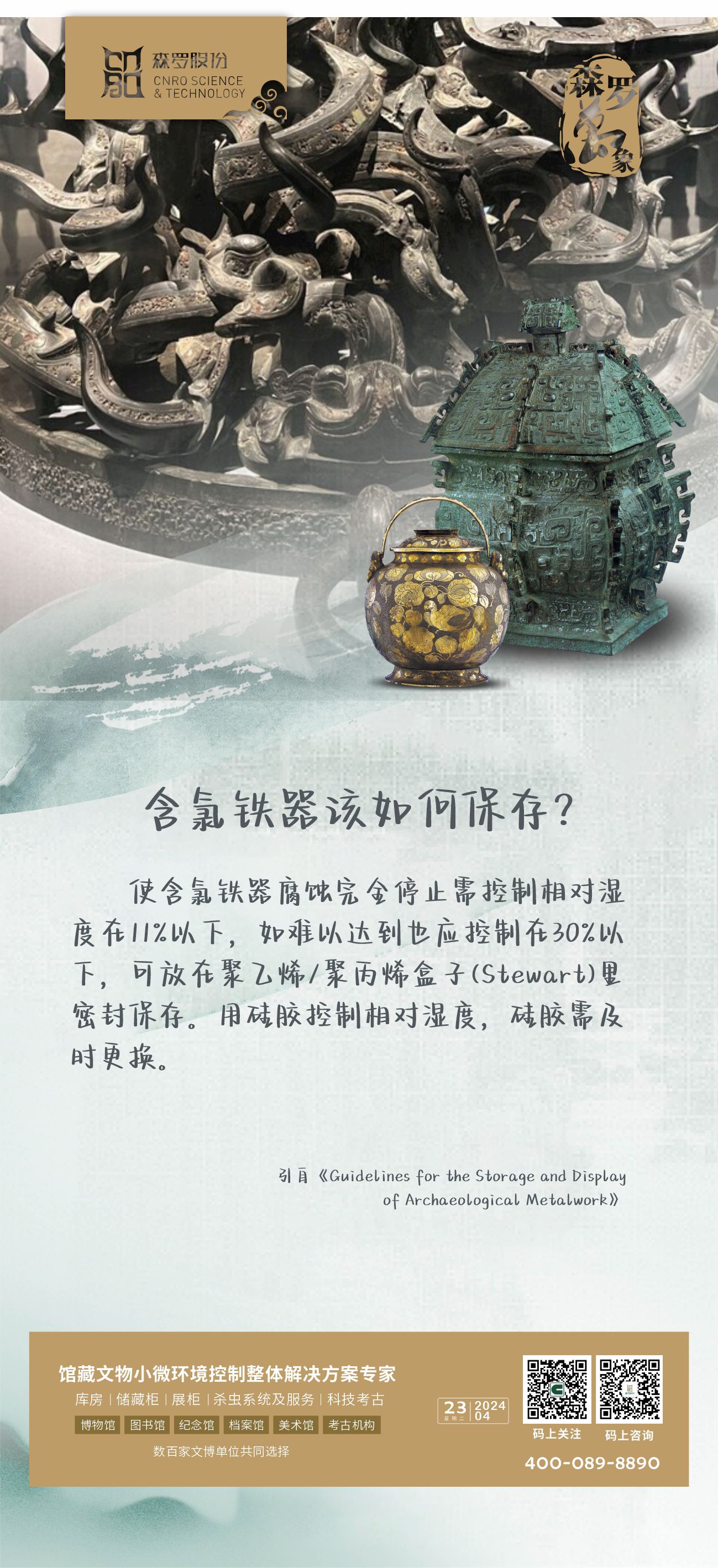 《森羅萬象》,萬象包羅第75問 含氯鐵器該如何保存?覓卷以求知之精髓 尋典以明學之微奧掃碼私信,與森羅小助手一起覽藉摘句,探尋智慧之光。